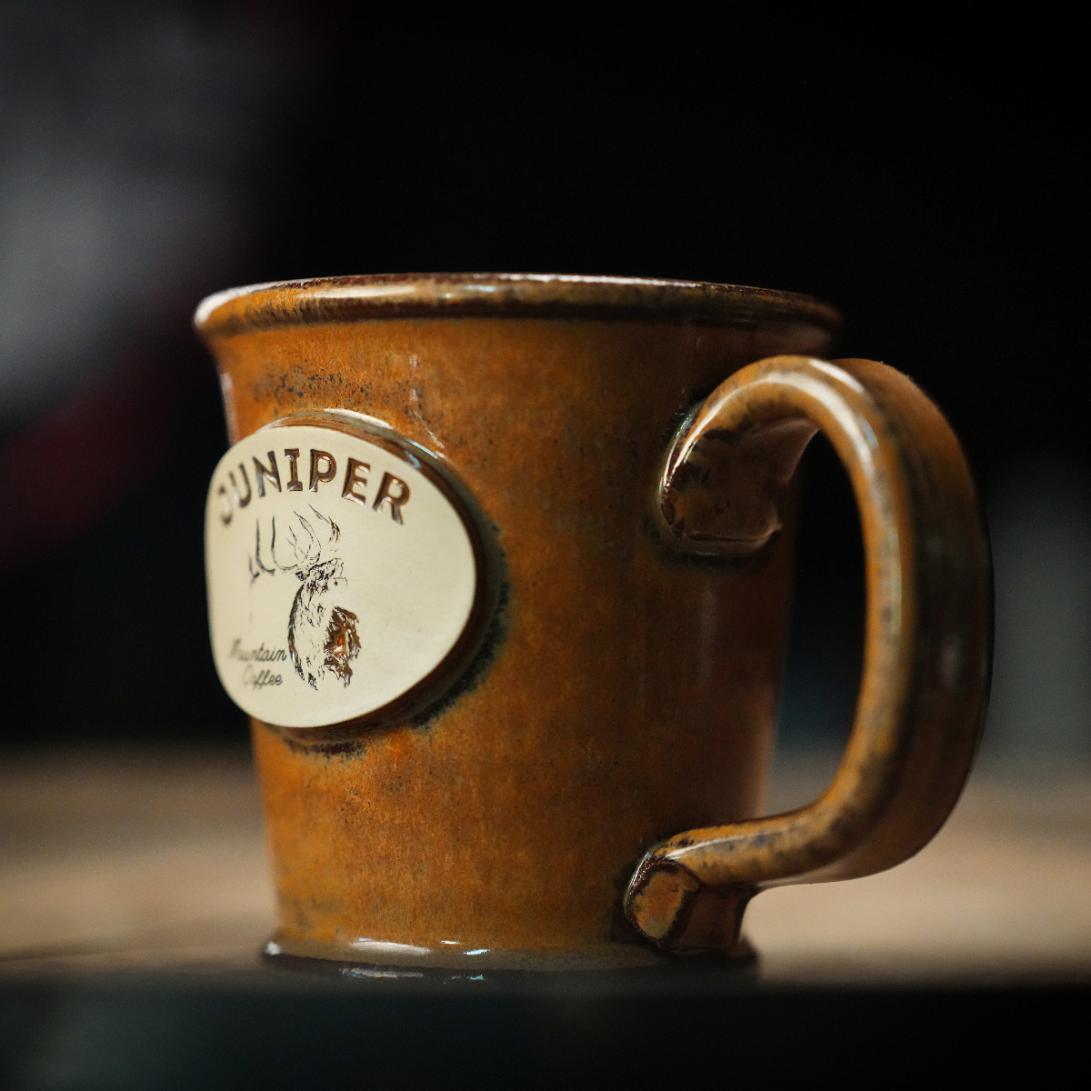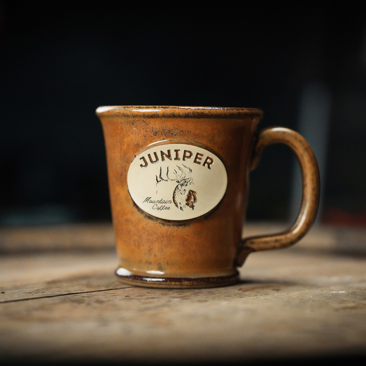 Coming in at a manageable 12-ounce capacity, "The "Rambler" is perfect for that first brew in the morning. This batch features 100% handmade/hand thrown ceramic with a weathered sandstone finish. The artwork features a bugling bull, a common sight on "Juniper Mountain" come September.